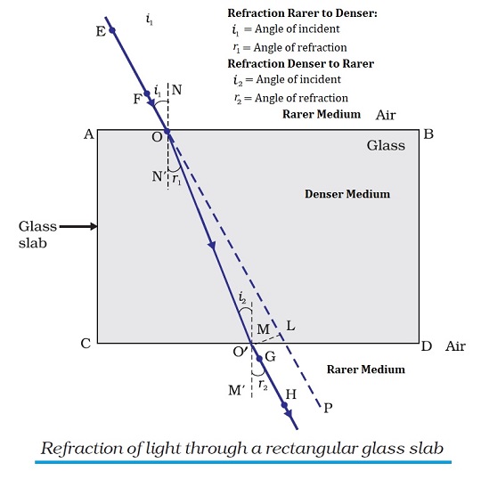 (ii) When a ray of light enters from denser medium to rarer medium it bends away from normal.