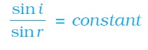 (ii) The ratio of sine of angle of incidence to the sine of angle of refraction is a constant, for the light of a given colour and for the given pair of media. This law is also known as Snell’s law of refraction.