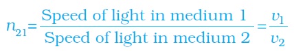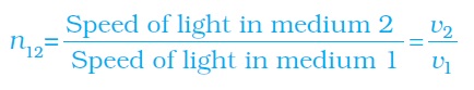 The refractive index of medium1 with respect to medium 2 is represented as n12. It is given by